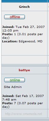 Screenshot of the changes made to viewtopic.php, see after "Posts: 1" and "Posts: 7".
